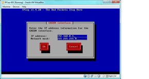 - select OK. if you are new to ipcop/routers in general, apply these settings: 192.168.0.1 for the IP, and 255.255.255.0 for the subnet mask. advanced users should tailor this to their specific needs: