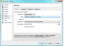- Next, select the network tab and select “Bridged Networking” under adapter 1 tab: