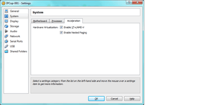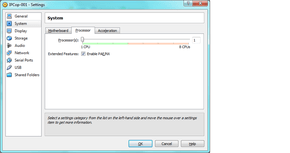 The PAE/NX setting dramatically increases virtual machine performance. When you start the VM, if it complains, both this setting, and the two on the next page may need to be turned off. to get the machine to boot. It is possible on all modern machines for all three to be enabled, occasionally requiring a BIOS firmware update of the host machine. email me if you run in to this problem and we may be able to work it out!