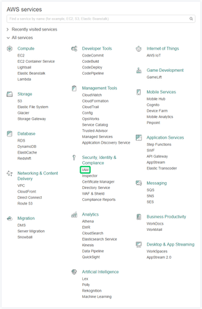 We’ll start this by going to the AWS Console and clicking on IAM.